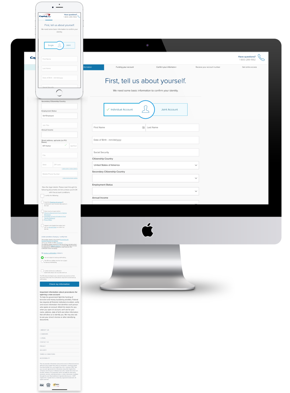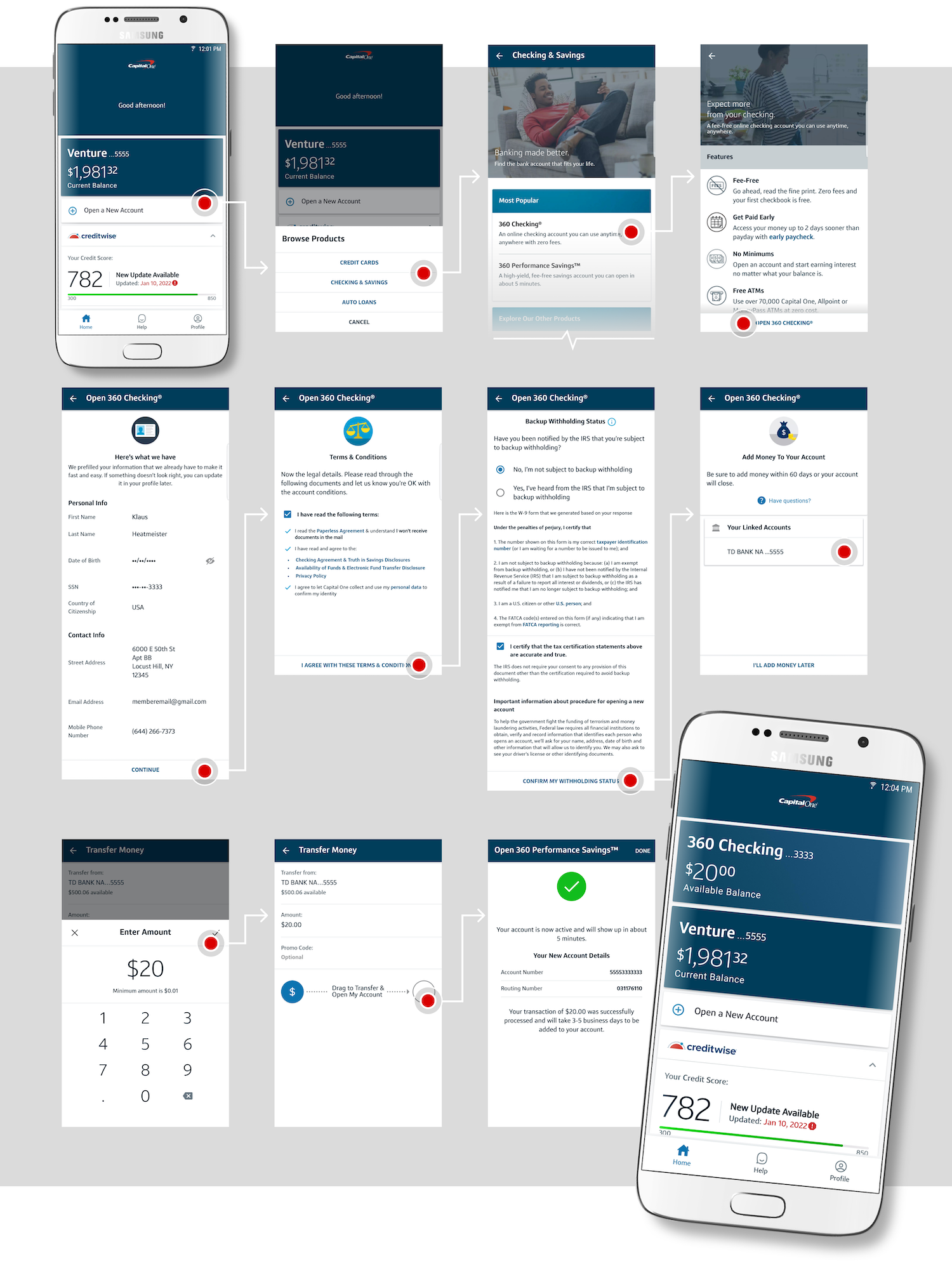 When I first joined Capital One's Growth team, the only way to open a checking or savings account was to do it on the web and then go to the mobile device to access your new account. With the national marketing campaign preparing to push both the mobile features AND the ability to open an account “in under 5 minutes,” there was a considerable amount of pressure on our team to deliver.
