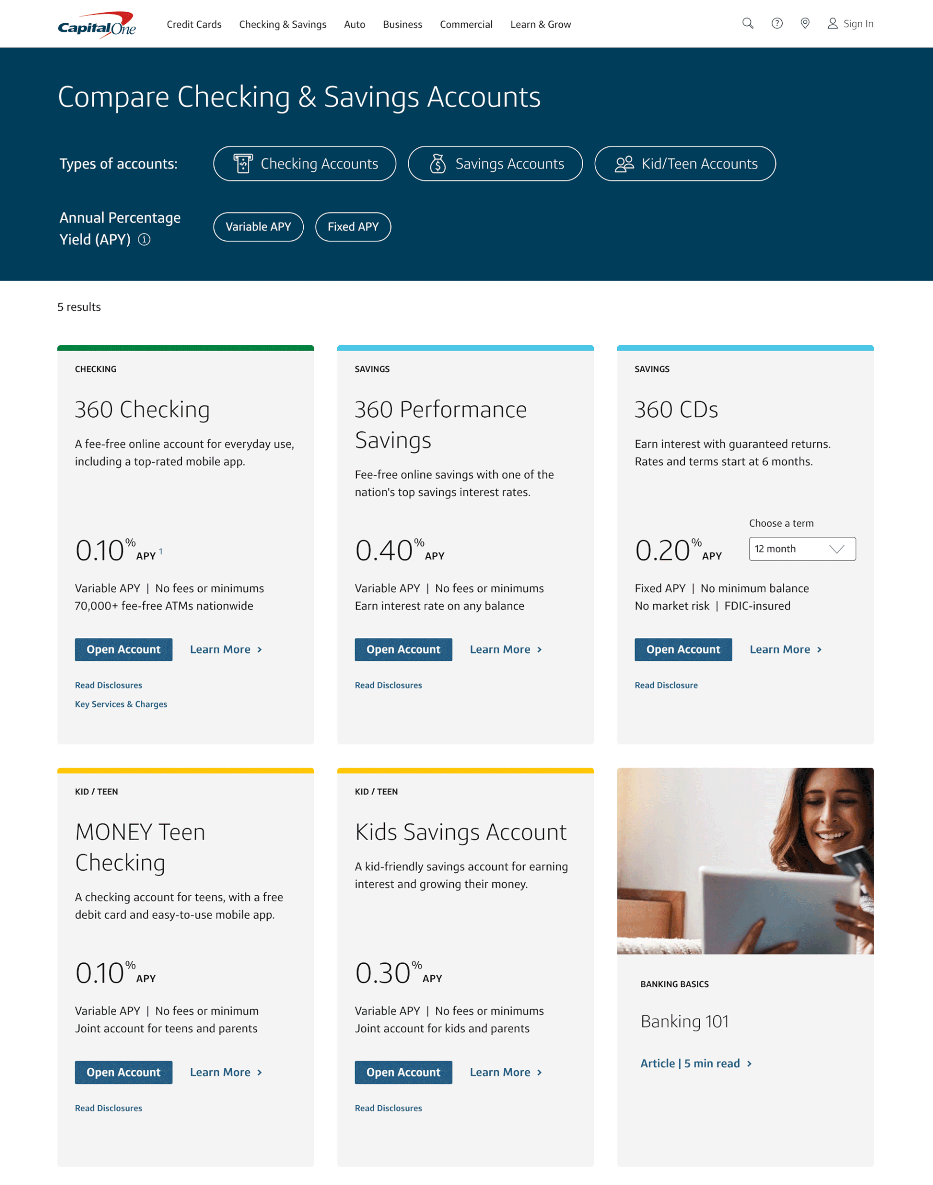Our product design team was the first to design and build a new product page on the site leveraging the new design system (and a couple of the new components that we created). Our Enterprise Site design partners had made giant strides in creating an entirely new and modernized design system, the bank pages had yet to be modernized. Fortunately, I and my team had played a role in the design of key site-wide elements like main navigation and benefits features by participating in the many co-creation sessions that our partners invited line of business product teams to. And as a lane lead, I was also part of the director+ planning group that met monthly to discuss, review and approve the Content Management System and build book components, so I was very familiar with the overall language and system.